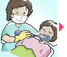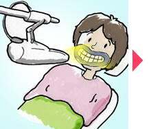 | 短時間ホワイトニング 熱の出ない特殊な光と過酸化水素ジェルを用いて、歯科医院で1時間ほどで歯のホワイトニング(漂白)ができる治療法。 熱が出ないので、痛みもなく、後で歯がしみたりすることもほとんどありません。 処置中は、音楽を聴いて快適に過ごしていただけます。眠っていただいても結構です。 ただし,保険外治療となり,その歯の状態によってはできないこともありますので,歯科医師にご相談ください。 ブリーチング剤を歯の表面に作用することにより発生する酸素(ラジカル)が色素を無色の物質に分解するため,歯の色素が薄くなります。 |