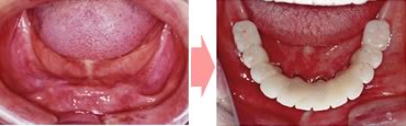 A【術前の治療】 インプラントを埋入する前に、歯周病、歯根の病気などの治療が必要な患者さんに行います。また、治療完了までのあいだに使う仮の入れ歯やブリッジなども必要に応じて用意します。インプラント治療でよい結果を得るには、まずはお口の健康を回復させることが大切です。 |