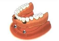 義歯タイプ 義歯タイプは、2〜3本程度のインプラントを使用し、それを支えとして総入れ歯を安定させる方法で、取り外しての清掃が必要です。 手術は1回で骨の状態が良い場合には、その日から義歯を安定させることができます。 治療費は70万円から80万円必要です。 |