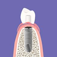 F【人工歯冠の装着】 歯ぐきが落ち着いたところで、仮の人工の歯冠を着けます。 同時に、最終的な人工の歯冠の製作にかかります。 噛み合わせや色調、掃除のしやすさなどを考慮し、最終的な人工の歯冠を作ります。これが装着されれば治療完了です。 |