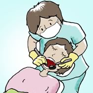 | D【骨結合を待つ】 インプラントとあごの骨の結合を3?6ヶ月待ちます。できるだけ仮歯を使ってより快適に過ごしていただきます。 |