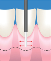 | レーザー治療は歯周病にも有効で、歯周組織のダメージを最小限に抑え、歯周ポケット内の殺菌効果、清掃効果および掻爬が可能となります。その結果、歯周ポケットの深さの減少と炎症の消退が望めます。患者さまにとっては痛みも少なく、早くきれいに治ると好評です。 | ||