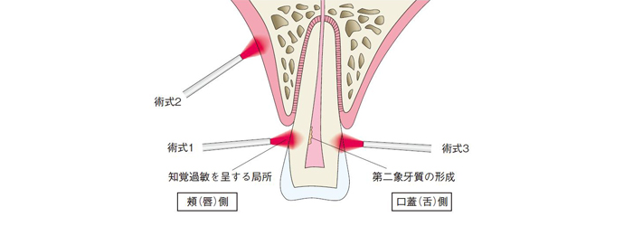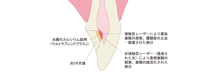 | 半導体レーザーが、組織を透過することにより、知覚過敏症にも効果的です。 |