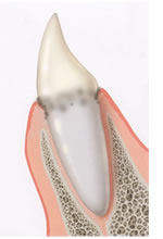 【2期 軽度歯周炎】 歯周ポケット=3〜5mm 歯周ポケットという溝ができ、歯垢や歯石がたまる。歯ぐきから出血したり、膿が出ることも。歯槽骨が溶け始める。 歯周ポケットの歯石を取り除き、ブラッシングとマッサージを行う。 |